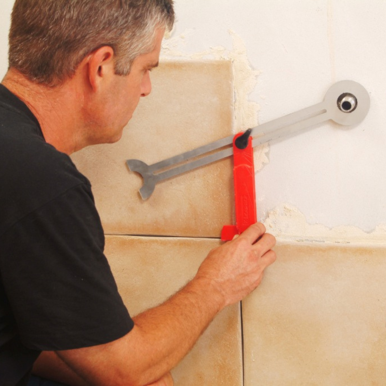 - USE ➤ Marks the exact position of pipe and faucet holes onto tiles
