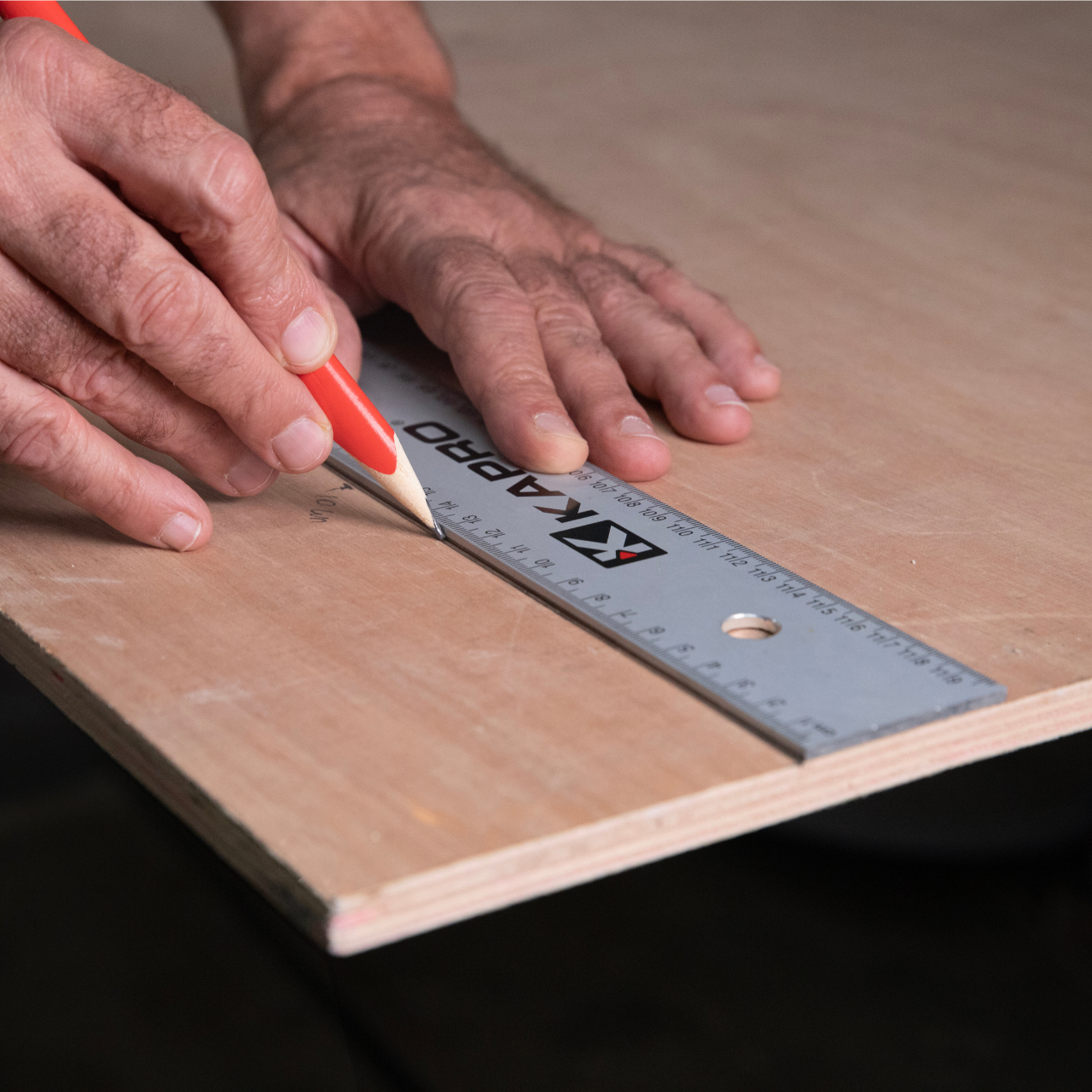 The thickness of our straightedge provides a nice cutting or drawing edge.