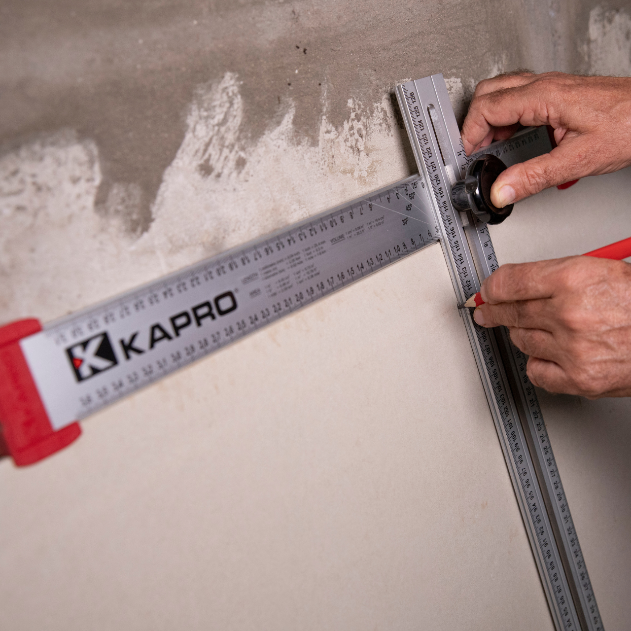 The Kapro 317 Adjustable T-Square is designed with a double edged, aluminum ruler with an anodized finish. It's ABS end caps with a revolutionary hands-free holding ledge won’t slip when placed or slide on an edge of a surface.