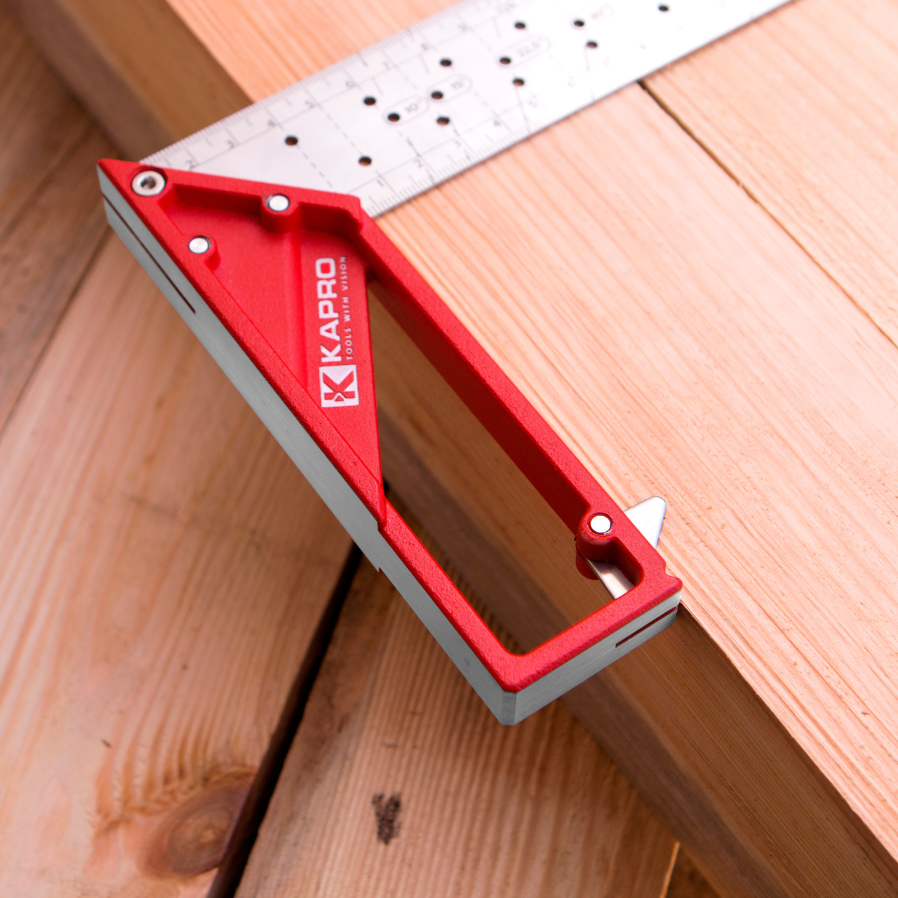 The Kapro 353 ’s blade has marking holes at 10°, 15°, 22.5°, 30°, 45°, 50° and 60° for angle marking and includes openings every ¼ inch for fluid and parallel pencil markings.