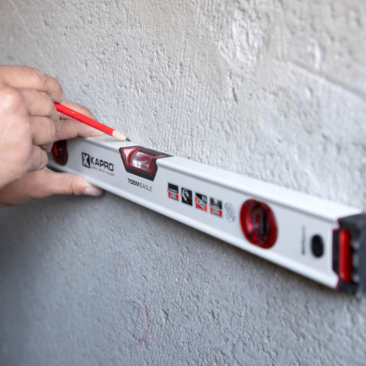 Say hello to the newest addition to Kapro’s line of OPTIVISION™ Red leveling products- the Kapro 705 Eagle contractor box level.
