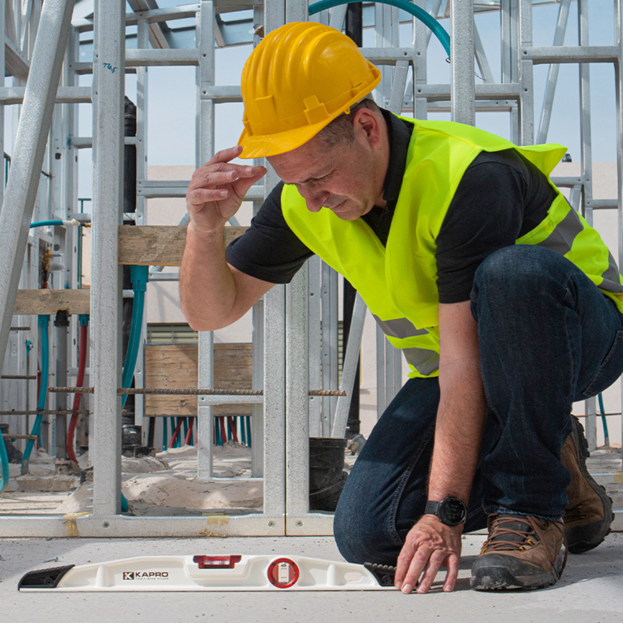 The Kapro 930 SmartCast is a professional heavy duty cast mason’s level with a modern tapered profile that includes 2 break-proof solid acrylic vials based on Kapro’s patented Optivision™ Red feature.
