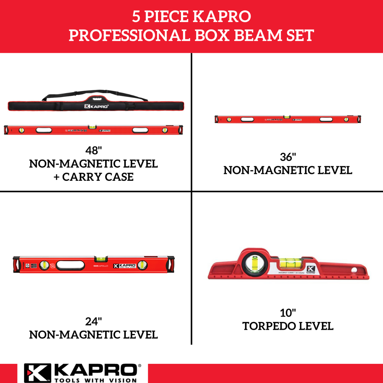 Kapro Level Set Apollo Non-Magnetic 3 Box & 1 Torpedo Level Set w/ Bag